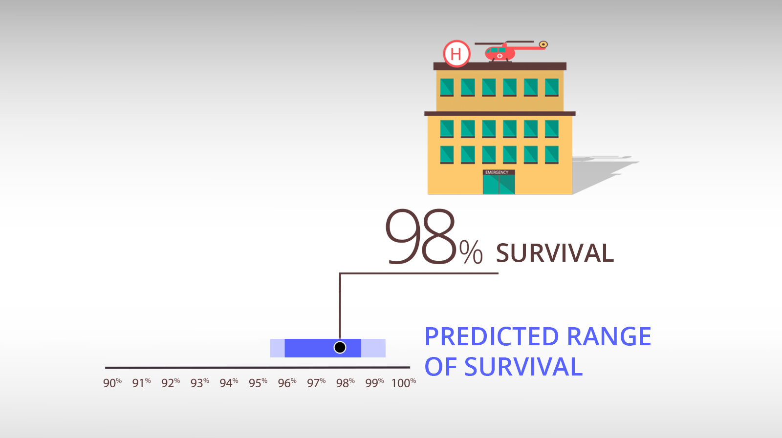 A hospital's survival rate should only be compared to its own predicted range. It is not valid to directly compare survival rates between hospitals.